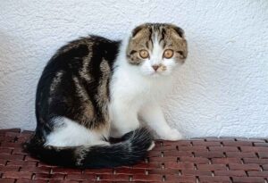hembra Scottish Fold – Black Tortie Bicolour